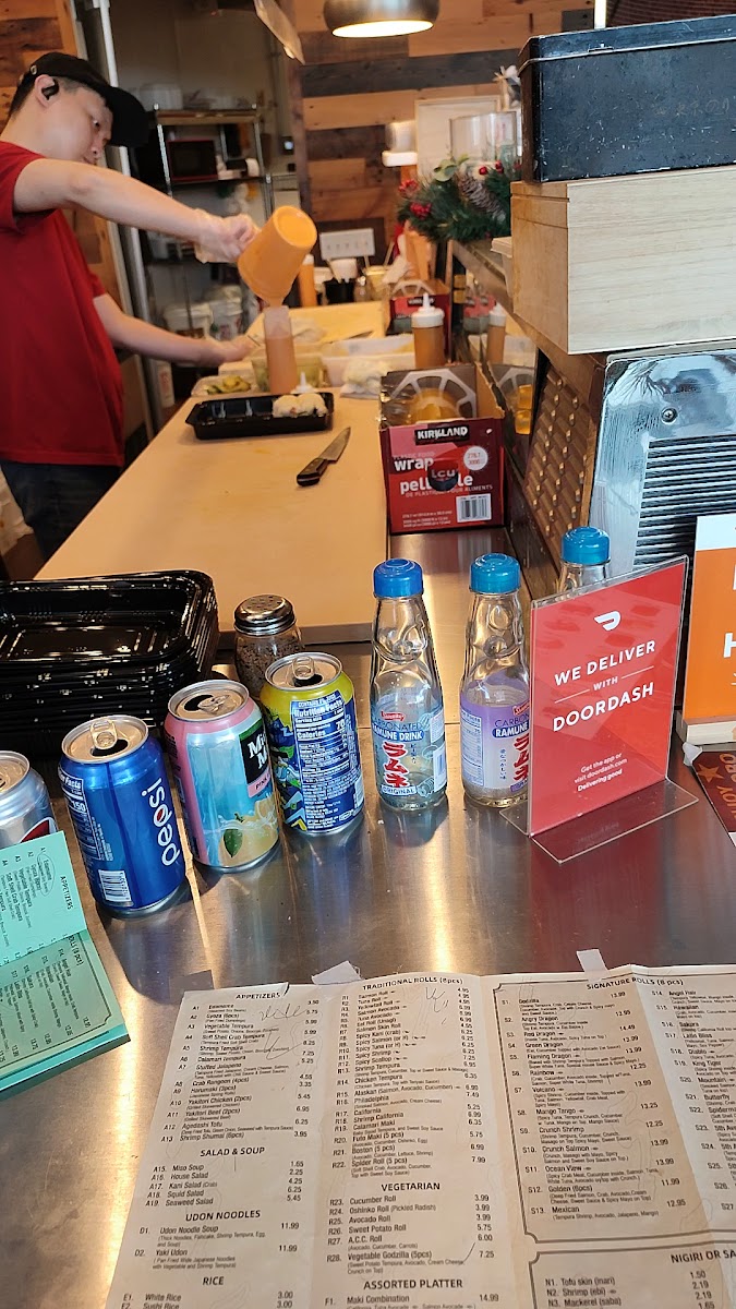 California, tuna avocado, salmon avocado. Wrapping: seaweed or soybean paper